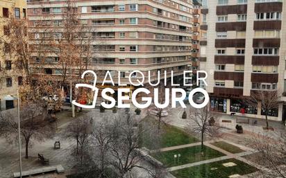 Piso de 110m2 en la Plaza San Miguel. Dispone de: salón comedor independiente con terraza cubierta, cocina amueblada y equipada, tres dormitorios, un baño completo y un aseo. La calefacción es de gas natural individual, ventanas de climalit, aire acondicionado y finca con ascensor con cota 0. Gastos de comunidad incluidos en el precio. No se aceptan animales.