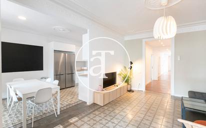 Apartamento de alquiler temporal (de 32 días a 11 meses) Disponibilidad inmediata *Disponible hasta el 31 de Diciembre del 2025* Este piso de alquiler temporal en el Eixample cuenta con una amplia zona de día muy luminosa. El salón comedor está equipado con sofá, televisor y zona de comedor, con salida a una amplia terraza de 10 m² amueblada con sillas de exterior, ideal para disfrutar al aire libre. Muy cerca, pero de manera separada, se encuentra la cocina, equipada con horno, dos neveras, lavavajillas, microondas, utensilios y gran superficie de trabajo. La zona de noche consta de cinco habitaciones. La primera es una suite con cama doble, armarios, mesa, silla y baño privado con ducha. La segunda habitación dispone de cama doble, mesa y sillas. La tercera es también doble, con mesa y sillas. La cuarta cuenta con armarios, mesa, sillas y salida a un balcón privado. Por último, la quinta habitación es muy amplia, equipada con dos camas individuales, armarios, dos mesas con sillas y acceso a un segundo balcón privado. El piso incluye además dos baños completos adicionales, ambos con ducha, así como una zona de lavadero independiente con lavadora, secadora y sillas. Para mayor confort, la vivienda está equipada con calefacción, aire acondicionado y wifi de alta velocidad. En cuanto a la ubicación, se encuentra a solo 3 minutos caminando de la estación de metro Tetuan (L2) y muy cerca del Paseo Sant Joan, un eje que conecta con la Avenida Diagonal y el TRAM, rodeado de comercios, restaurantes y zonas verdes para disfrutar de la ciudad.