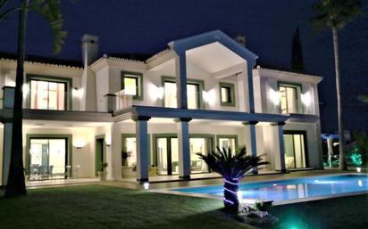 Situada en la privilegiada zona de Selwo, en Estepona Este, Málaga, esta excepcional villa de lujo ofrece un entorno exclusivo y cómodo, rodeada de tranquilidad y con excelentes conexiones a los principales servicios y campos de golf de la Costa del Sol. Construida sobre una amplia parcela de 2.004 m² y con una superficie total construida de 931 m², esta propiedad destaca por su elegancia, amplitud y espectaculares vistas tanto al mar como a la montaña. La villa cuenta con cinco amplios dormitorios, todos ellos con baño en suite, lo que garantiza privacidad y confort a todos los ocupantes. Además, dispone de siete baños completos y dos aseos para invitados, repartidos inteligentemente por toda la vivienda. La propiedad se distribuye en varias zonas que incluyen un espacioso salón, comedor separado y cocina de concepto abierto totalmente equipada. Encontramos acabados de alta calidad, tal como los sistemas de calefacción por suelo radiante en toda la villa (y parcialmente donde se requiera refuerzo), aire acondicionado, doble acristalamiento, así como alarmas, puerta blindada y cámaras de vigilancia, proporcionando máxima seguridad. La villa se integra en una urbanización cerrada con entrada de seguridad y servicio de vigilancia las 24 horas. Pensando en el ocio y el bienestar, la villa ofrece un cine privado y sala de juegos, gimnasio, sauna, jacuzzi y una espectacular piscina privada climatizada rodeada de un jardín perfectamente cuidado. La terraza cubierta e impresionantes vistas panorámicas son ideales para disfrutar del clima mediterráneo. Completan la propiedad diferentes terrazas privadas, garaje privado, cuarto de lavandería y varias áreas de almacenamiento, además de funcionales características como la aerotermia, internet de fibra óptica de alta velocidad y Wi-Fi en toda la vivienda. Se entrega completamente amueblada y en estado excelente, lista para entrar a vivir y disfrutar de una experiencia única en un entorno exclusivo. Esta villa representa la máxima expresión de confort, lujo y seguridad en una de las zonas más cotizadas de Estepona, cerca de prestigiosos campos de golf, y todos los servicios necesarios para una vida selecta y tranquila.