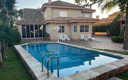 Exclusiva vivienda independiente en La Eliana, situada en una de las zonas más demandadas del municipio, a solo cinco minutos a pie de supermercados, colegios y todos los servicios. La propiedad, asentada sobre una parcela de 1.050 m², ofrece 320 m² construidos distribuidos en dos plantas, con amplios espacios interiores y un entorno exterior perfectamente consolidado. En la planta baja, la vivienda dispone de dos salones de más de 35 m² cada uno, un despacho ideal para teletrabajar, una cocina abierta totalmente equipada, un baño completo y una habitación doble. También encontramos una terraza acristalada perfecta para disfrutar tanto en verano como en invierno, gracias a su luminosidad y vistas al jardín. La primera planta alberga el dormitorio principal con baño en suite y dos vestidores, además de una habitación adicional, otro baño completo y una zona abuhardillada multifuncional, ideal como sala de juegos, gimnasio o zona de relax. En el exterior, la vivienda cuenta con garaje con capacidad para tres vehículos, trastero, baño exterior, bodega y una barbacoa cubierta. El jardín, totalmente ajardinado y maduro, incluye una amplia piscina y un cenador de madera, creando un espacio perfecto para el ocio y el descanso al aire libre. Una oportunidad única de disfrutar de una casa independiente, espaciosa y luminosa, en una ubicación privilegiada de La Eliana.