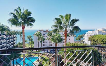 "Precioso apartamento orientado al sur con espectaculares vistas panorámicas al mar en complejo de primera línea de playa en Calahonda. Consta de 1 dormitorio con cuarto de baño en suite, amplio salon-comedor con salida a la terraza, cocina independiente completamente amueblada y equipada con lavadero y precioso y amplia terraza con espectaculares vistas al mar y mucho sol. El complejo "Mi Capricho" se encuentra en primera linea de playa y tienen salida directa a la playa y paseo maritimo directamente desde sus jardines. Disfruta de dos piscinas comunitarias, una de ellas abierta todo el año y la otra solo en temporada y tienen también un restaurante propio que abre en temporada vacacional. Concierge disponible 24 horas y cámaras de seguridad. Plaza de garaje subterránea incluida en el precio. Ubicación ideal para disfrutar una temporada en el sol o para teletrabajar!!! Contrato de temporada máximo 9 meses, deberá aportar contrato de trabajo, nóminas, extracto bancarios, etc. No se concertarán citas sin la presentación de la documentación."
