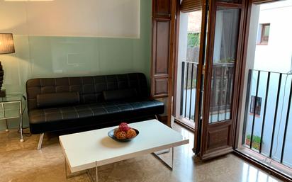 Preguntar en GranaCasa por la referencia 43204. Se alquila estudio en primera planta sin ascensor. Zona tranquila y muy bien comunicada con paradas de autobuses cercanas; situado entre Plaza Larga y Puerta de Elvira. Cuenta con todo tipo de comercios y locales de ocio en los alrededores. El salón es amplio y luminoso, con balcón, y está dotado de un sofá, una televisión y una mesa baja; la zona de comedor cuenta con una mesa alta con sillas. La cocina está integrada en el salón y está formada por un frigorífico, una vitrocerámica de tres fuegos, un horno y una lavadora. El dormitorio es luminoso y está compuesto de una cama de matrimonio y un armario. El baño dispone de una bañera, un lavabo, un inodoro y un bidé. Hay un armario empotrado más para almacenamiento en el salón. Tiene aire acondicionado y calefacción. Para ESTUDIANTES o TRABAJADORES. Se aceptan mascotas.