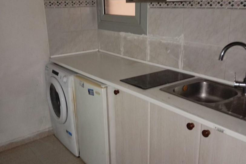 - Cocina con lavadora, nevera, vitrocerámica y campana extractora