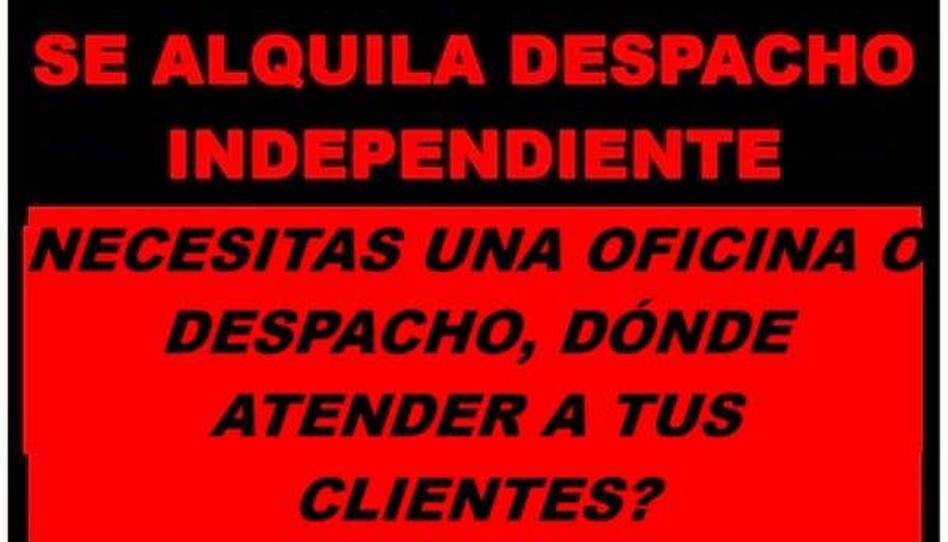 SE ALQUILA DESPACHO INDEPENDIENTE, ES OFICINA A PIE DE CALLE. IDEAL PARA PROFESIONALES DEL SECTOR: INMOBILIARIO, ARQUITECTOS, AGENCIAS DE VIAJES, ABOGADOS, ADMINISTRADORES DE FINCAS, ASESORES, ETC.
