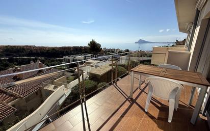 Te ofrecemos de manera exclusiva este espectacular ático dúplex en Mascarat, donde la luz natural y los amplios espacios crean un ambiente acogedor y elegante. La vivienda disponía de tres dormitorios y tres baños completos, hoy en dia uno de los dormitorios ha sido convertido en un vestidor de ensueño, ideal para los amantes del orden y el estilo. Uno de los baños cuenta con una relajante bañera de hidromasaje en la planta superior. Disfrute al aire libre en sus tres amplias terrazas, perfectas para desayunar con vistas, relajarte bajo el sol o ver el atardecer. Cuenta con una plaza de parking en el garaje , numerada. Este ático dúplex combina comodidad, luminosidad y diseño en una de las zonas más exclusivas de la Costa Blanca. Importante: No se admiten mascotas. 2 Meses de fianza. Imprescindible: Demostración de solvencia económica estable y con garantías de pago fiscales. [IW]