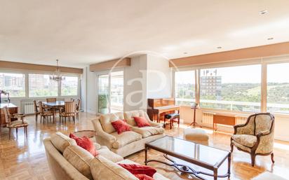 PISO SEÑORIAL MUY LUMINOSO EN ZONA RESIDENCIAL DE LUJO CON DOS PLAZAS DE GARAJE EN FUENTELARREINA VIVIENDA EN ALQUILER EN URBANIZACIÓN CON PISCINA. PUEDE ALQUILARSE SIN MUEBLES. Luminosa vivienda señorial en zona residencial de lujo. La propiedad se distribuye en un espacioso hall de entrada, amplio salón comedor con grandes ventanales y acceso a una agradable terraza con espectaculares vistas al campo de golf del Club Puerta de Hierro. Posee tres amplias habitaciones y dos baños. La habitación principal tiene el baño en suite con doble lavabo, ducha, bañera y amplio vestidor. El segundo baño tiene plato de ducha. La cocina está totalmente equipada y tiene preciosas vistas a la sierra. La vivienda dispone de dos accesos independientes: entrada principal y entrada de servicio. Se incluye dos plazas de garaje en el precio. Existe la posibilidad de alquilar la vivienda sin muebles. Dispone suelo de tarima, puerta blindada, vídeo portero, aire acondicionado, calefacción y agua caliente por caldera individual de gas natural y ventanas Climalit. El edificio tiene únicamente 17 viviendas, amplias zonas ajardinadas comunes y una agradable piscina rodeada de jardines. Elegante ascensor y montacargas. La comunidad tiene conserje. Ubicado en el barrio residencial Fuentelarreina, en el distrito de Fuencarral-El Pardo, al noroeste de Madrid. La zona es residencial, muy tranquila, en un entorno exclusivo e ideal para familias o parejas que desean vivir en una zona segura, verde y silenciosa. A pocos minutos del centro de Madrid y con fácil acceso a la avenida del Cardenal Herrera Oria, la M-30, la M-40 y la A-6. ¿Te imaginas vivir aquí? Ref. AM2505074