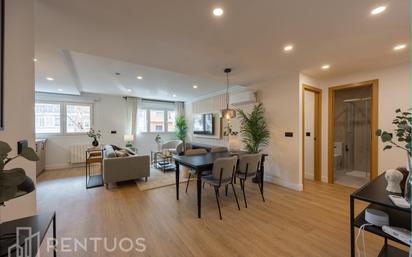 Espectacular piso reformado y amueblado con diseño moderno de 2 dormitorios en Ciudad Lineal. Este precioso piso exterior de 75 m2 cuenta con un amplio y luminoso salón-comedor con cocina abierta, 2 dormitorios (1 doble y 1 individual) y 2 baños completos con plato de ducha (1 en-suite en habitación doble). La cocina está equipada con todos los electrodomésticos. Al no tener pasillos, el espacio de la vivienda está perfectamente distribuido, dando sensación de amplitud en cada una de las estancias. Además del bonito diseño y decoración, la vivienda cuenta con calefacción central por radiadores regulados, aire acondicionado con bomba de calor y domótica en ambas habitaciones. La finca dispone de ascensor y portero. Con una ubicación inmejorable, esta vivienda se encuentra en una tranquila calle de Ciudad Lineal, donde podrás encontrar todo tipo de tiendas y comercios, restaurantes y transporte público. A 3 minutos a pie de la parada de metro Estación de Quintana (L5) y Pueblo Nuevo (L5 y L7). La propiedad de este inmueble no permite mascotas. En Rentuos somos especialistas en gestión de alquileres. Nos preocupamos de atender a inquilinos y propietarios para que tengan un arrendamiento agradable y sin preocupaciones. Rentuos Real Estate SL es un agente inmobiliario colegiado.