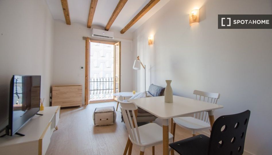 Bienvenido a este encantador estudio ubicado en Sants, Barcelona. El estudio está completamente amueblado y cuenta con una cocina equipada con electrodomésticos esenciales como horno y lavavajillas. Incluye aire acondicionado individual para una cómoda calefacción y refrigeración, garantizando un ambiente confortable. No se permite fumar ni se admiten mascotas, y los gastos de electricidad, agua y wifi se pagan directamente al propietario en la factura. Esta propiedad no ha sido verificada personalmente por Spotahome, pero nos aseguramos de que todos los propietarios se sometan a un riguroso proceso de verificación para su tranquilidad.