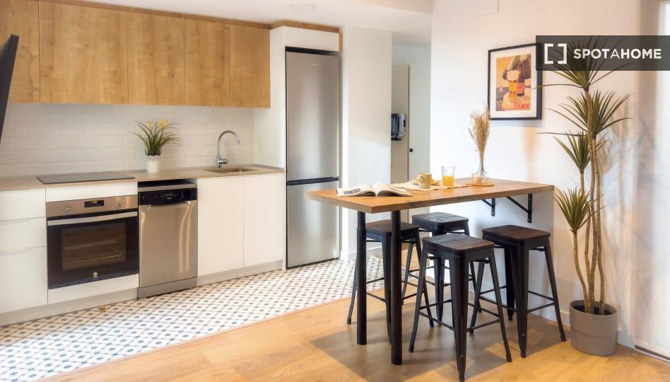 Este encantador apartamento de 3 habitaciones en Can Baró, Barcelona, ofrece un salón amueblado con aire acondicionado individual y calefacción central. Incluye una cocina equipada con secadora, lavavajillas y horno, además de acceso a una lavadora común. Se admiten mascotas con restricciones, pero está prohibido fumar. Spotahome ha verificado la calidad de la propiedad, lo que garantiza un proceso de alquiler fiable.