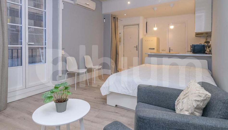 Acogedor estudio tipo loft de unos 28 m2, situado en un segundo piso real de una finca típica del Born, con una escalera estrecha y mucho encanto.