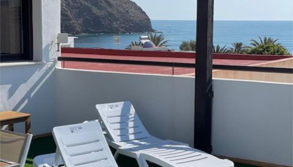 Ático situado en la segunda planta de un edificio sin ascensor, gran terraza con vistas al mar, jacuzzi y ducha, suelo de madera y césped artificial con una barra junto a la cocina de la vivienda, mobiliario de exterior, toldos para protegerse del sol y hacer sobremesas inolvidables. Situado a 50m de la playa.