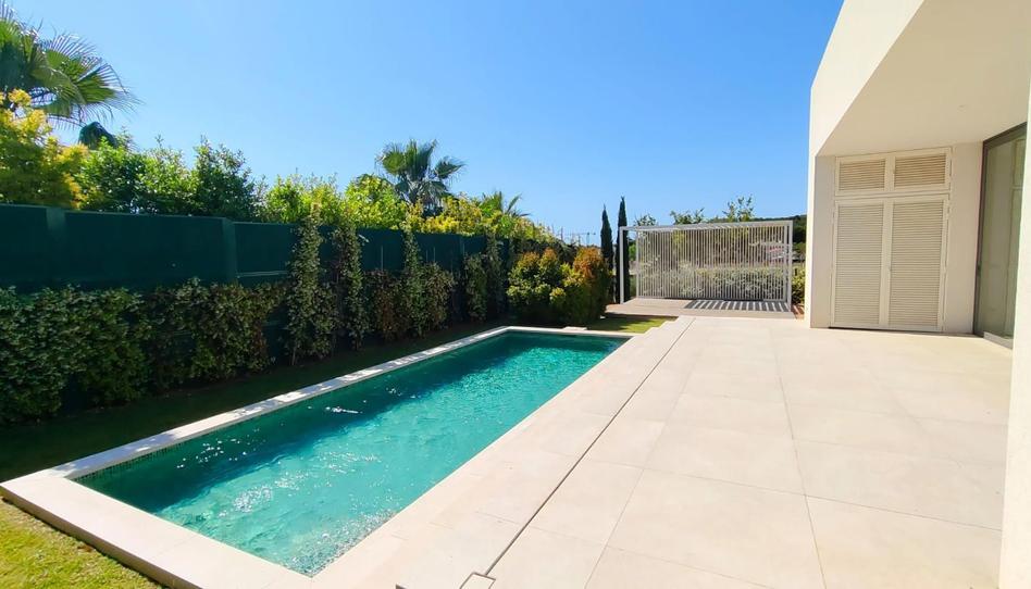 Piscina con gresite e iluminación LED, pérgola y parking de dos plazas. Vegetación mediterránea de poco consumo de agua. Puerta corredera motorizada para el acceso de vehículos.