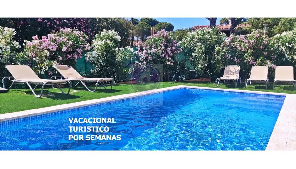 TURISTICO. Alquiler Vacacional. Con vistas al mar Mediterráneo, la villa Anna en Castell-Platja d'Aro es perfecta para unas vacaciones relajantes. La propiedad de 194 m² consta de una sala de estar, 3 dormitorios y 3 baños, así como un aseo adicional y por lo tanto puede acomodar a 6 personas. Los servicios adicionales incluyen Wi-Fi, televisión, aire acondicionado y lavadora. Esta villa dispone de un espacio exterior privado con piscina, jardín, terraza cubierta, 2 balcones y barbacoa. Ideal para unas vacaciones relajantes en plena naturaleza.