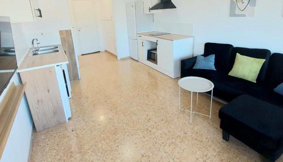 Coqueto apartamento con ASCENSOR junto al Estadio de Castalia, muy próximo al Hospital General Universitario y al Hospital Vithas. Es todo exterior por lo que es muy luminoso. La vivienda cuenta con una habitación doble con cama de 150 cm y canapé, además de un despacho, salón/cocina y balcón soleado con vistas a las montañas y al Estadio de Castalia (desde el balcón podrás disfrutar gratis de los partidos de fútbol en vivo y en directo).