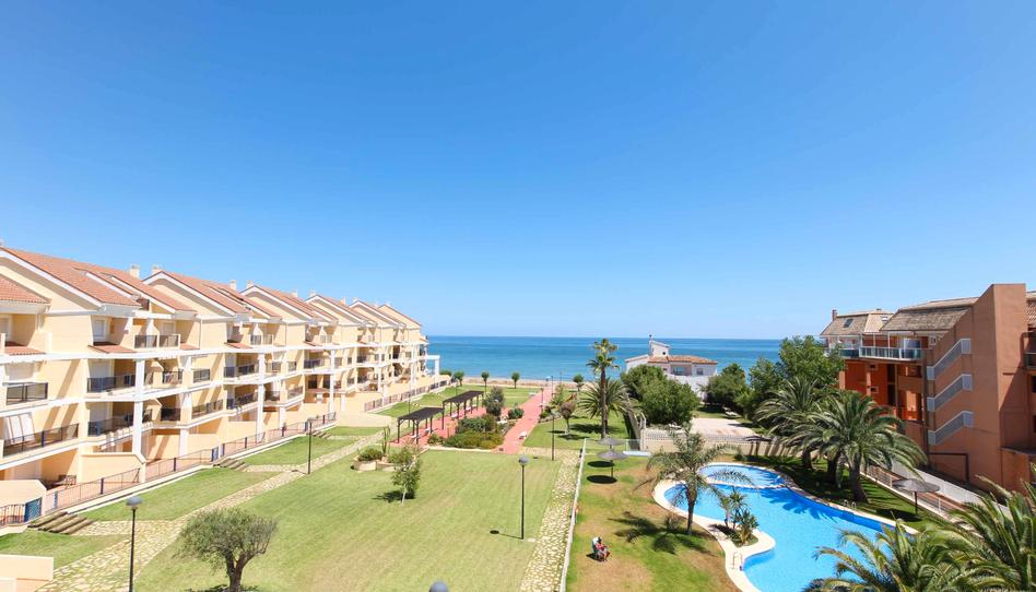 Ático dúplex con vistas frontales al mar situado en 1-a línea de la playa de arena en urb. ALMADRABA, a 6 km del centro de Denia. Complejo residencial cerrado con jardín y piscina comunitaria, parque infantil, zona de descanso, con salida directa al mar.