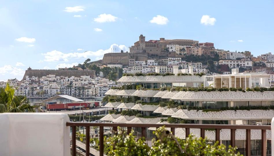 El apartamento está situado en el corazón de una de las zonas más competitivas y mejor comunicadas de la isla, con unas vistas extraordinarias al centro histórico de Dalt Vila, a poca distancia de Lio, Pacha, Casino, Calma, Cappuccino y muchos otros, alto moda, boutiques y el nuevo puerto deportivo de Marina Botafoch.
