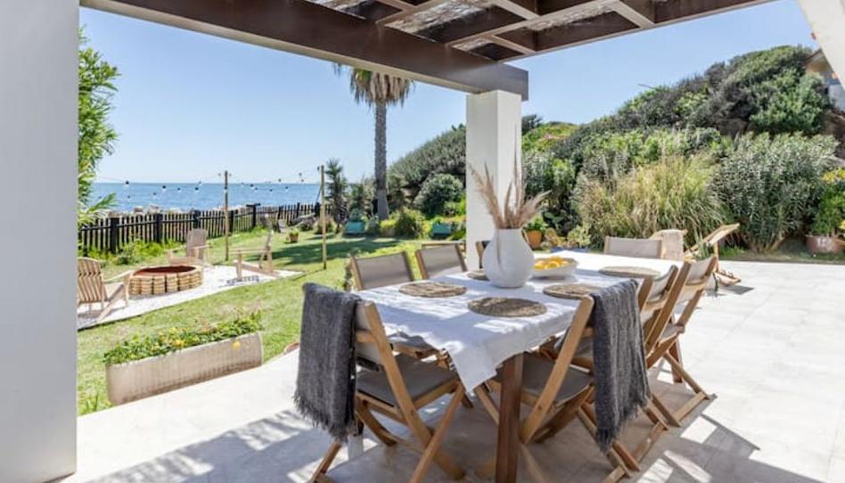 Pase directamente a la arena desde esta impresionante villa frente al mar en Estepona, ubicada a solo 30 minutos de Marbella.
