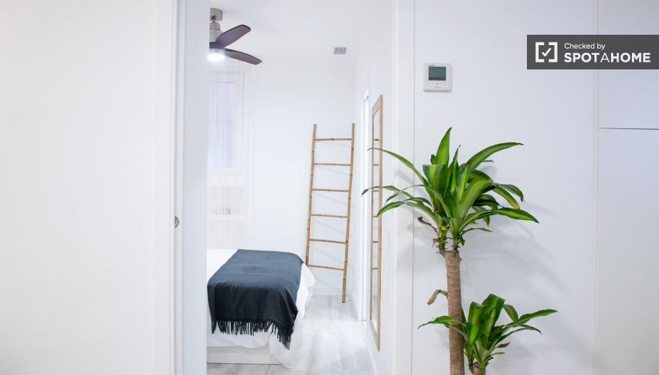 ¿Buscas un estudio acogedor en Pinar del Rey, Madrid? Este estudio exterior, bien amueblado y con aire acondicionado central, está equipado con una cocina con lavavajillas, horno y lavadora. La propiedad ha sido revisada por Spotahome. Los gastos de agua, electricidad y wifi están incluidos con restricciones. No se permite fumar ni se admiten mascotas, pero es perfecto para profesionales y estudiantes, e ideal para parejas.