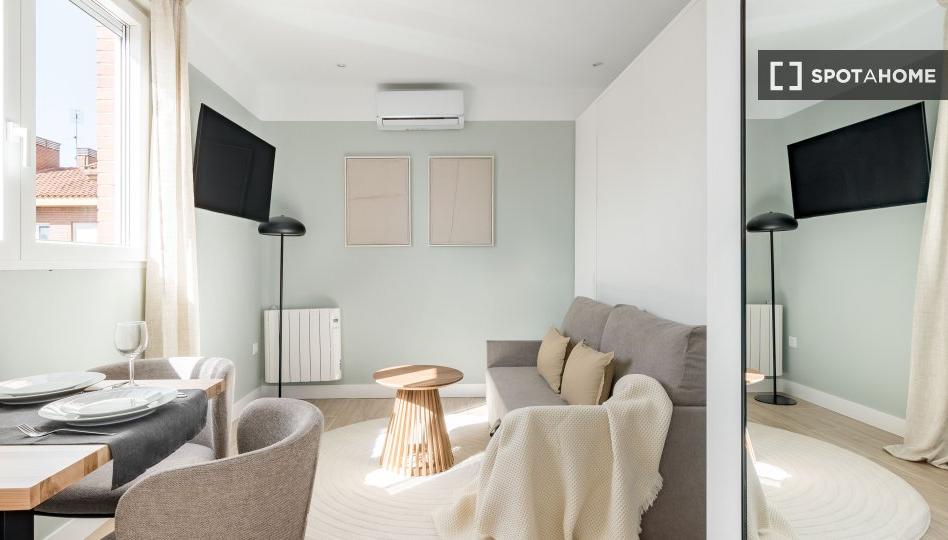Este estudio, convenientemente ubicado en San Juan Bautista, Madrid, ofrece un espacio completamente amueblado y equipado con aire acondicionado individual. La cocina está totalmente equipada para sus necesidades y hay una lavadora común disponible. Además, todos los servicios, como agua, electricidad, gas y wifi, están cubiertos, lo que garantiza una vida sin complicaciones. Se prohíbe fumar y se admiten mascotas.