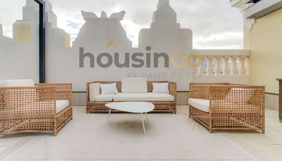 HousinGo presenta este atractivo ático, amplio y muy luminoso con dos magníficas terrazas, compuesto por dos dormitorios y dos cuartos de baño. Este maravilloso apartamento se encuentra ubicado en una finca clásica totalmente rehabilitada, cuya fachada pertenece al antiguo teatro Fontalba. Además, cuenta con las comodidades de un portero físico y ascensor, y se encuentra en una ubicación privilegiada, próxima al edificio de Telefónica y a la estación de metro de Gran Vía. Cabe destacar que esta vivienda está disponible para alquiler por meses, por lo que te invitamos a consultar para obtener más información.