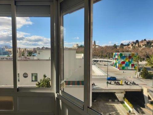 Alquiler temporal a partir de 11 meses por causa justificada, apartamento con un dormitorio independiente, amueblado, cocina completa equipada, gran armario empotrado, suelo porcelánico, aire acondicionado, ventanas Climalit, puerta acorazada, muy luminoso y con maravillosas vistas a la alcazaba, catedral, Palmeral de las Sorpresas y paseo del parque. En la puerta del muelle 1. En pleno centro de Málaga, junto a la playa de la malagueta. 1000 euros al mes comunidad incluida. No mascotas, máximo 2 personas, se piden garantías de pago y laborales demostrables [IW]