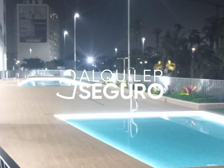 Piso de obra nueva a estrenar con primeras calidades , consta de 2 habitaciones, salón de paso, 2 baños completos (1 en suite) , cocina completamente equipada con todas las comodidades, armarios empotrados, calefacción y A/A centralizado. Vivienda exterior sin amueblar con amplia plaza de garaje. Finca con ascensor, portería, zonas exteriores y piscina. Gastos de comunidad incluidos. Excelente ubicación.