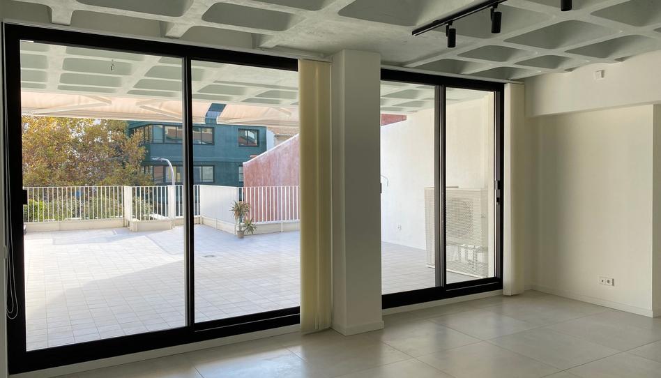 La vivienda cuenta con dos dormitorios y dos baños, además de un cuarto de coladuría. La zona de día está compuesta por una sala amplia y muy luminosa con cocina integrada en estilo minimalista, donde predomina el color blanco. Desde esta estancia se accede a una terraza enorme.