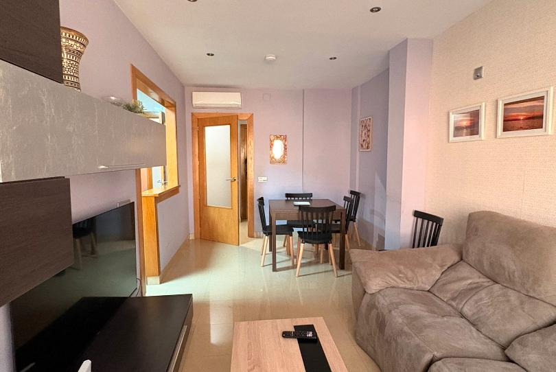 La cocina, conectada con un luminoso salón comedor. Vivienda completamente equipada con electrodomésticos. La propiedad se encuentra en un estado excelente y cuenta con aire acondicionado para asegurar tu confort durante los meses más cálidos.
