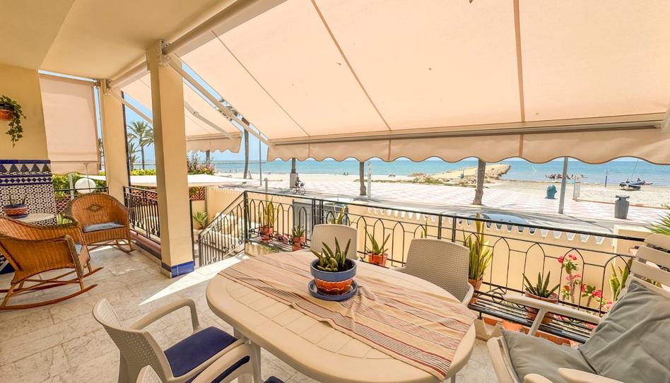 En la planta baja amplia terraza frontal al mar, toldos, gran salón comedor, amplia cocina toda equipada con todos los electrodomésticos y 1 aseo.
