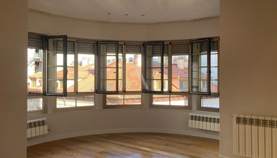 La vivienda de 107 metros, es exterior, muy luminosa, con buena distribución y unas vistas extraordinarias a la calle Santiago y Héroes de Alcántara.