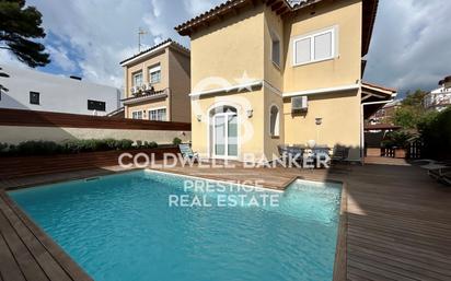 A escasos 500 metros de la playa de Castelldefels, encontramos esta preciosa casa de 2 plantas en una parcela de 600 m2 con piscina privada. Se distribuye en recibidor, aseo de cortesía, cocina office, una habitación doble con baño. En la planta más alta, tenemos tres habitaciones tipo suite, siendo la principal la más grande que cuenta con zona de vestidor y bañera con jacuzzi. Suelos de parket, aire acondicionado con bomba de calor en todas las estancias, cocina equipada y completamente amueblada. Un lujo a escasos metros del mar. #ref:CBES2782