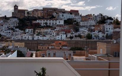 Propietario vende magnífico ático dúplex en el centro de Ibiza, cerca del puerto y de Vara de Rey, con terraza panorámica de 360º, con vistas a Dalt Vila, al puerto y a Puig de´n Valls. La vivienda consta de dos plantas unidas mediante una escalera interior, con luz natural en todas las estancias. Una verdadera joya inmobiliaria en el corazón de Ibiza. La planta inferior consta de cuatro dormitorios, 2 cuartos de baño y un despacho con biblioteca. La planta superior consta de sala de estar con chimenea, comedor, cocina, lavadero y apartamento independientes. El aparcamiento de la vivienda se encuentra en el edificio de enfrente, a una distancia de 50 metros, y va incluido en el precio. En el precio de venta va incluida la comisión de la inmobiliaria, que es del 5% + IVA, importe que se descontará si el comprador es un particular sin que intervenga una inmobiliaria de intermediación.
