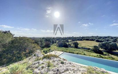 Esta finca es un verdadero paraíso en la Isla de Menorca. Con una extensión de 80 hectáreas, rodeada de barrancos, se encuentra situada en un lugar ideal para aquellos que buscan privacidad y tranquilidad. La casa está construida en la parte más alta de la finca, por lo que cuenta con preciosas vistas al campo. La finca cuenta con un total de 800m2 construidos, la vivienda principal es de 400m2 aproximadamente, y encontramos construcciones anexas como una antigua boyera de 300m2, varios establos, cisternas... Tiene a su alrededor unas increíbles cuevas restauradas, con varios orificios en el techo que aportan luz natural y hacen que se respire una magia especial en ellas. Cuentan con luz y agua, por lo que se pueden utilizar perfectamente como comedor de verano. Además, la finca cuenta con una impresionante piscina desbordante de 70m de lámina de agua, rodeada de piedra de mares y con vistas al campo. También dispone de una antigua era, y una pequeña cantera desde donde se extrajeron las piedras de mares con las que se construyeron las construcciones anexas. Toda la finca conserva multitud de elementos originales. La vivienda principal fue construida en 1960 y restaurada en 2019 respetando el estilo original, como son una Cruz de San Juan y un reloj de sol en sus fachas principales, un porche con arcos de mares y un sinfin de elementos que la hacen única. Además, la reforma se realizó con acabados de alta calidad, como suelos de hormigón pulido y calefacción por suelo radiante con termostato independiente en cada estancia. La vivienda de 400m2 se distribuye en dos plantas. La planta baja es un amplio espacio diáfano destinado a salón-comedor y cocina (pendiente de terminar de reformar a gusto de los compradores). En este espacio encontramos un antiguo horno de leña y una chimenea de gran tamaño. En esta misma planta, con acceso independiente, encontramos un total de tres habitaciones en suite; dos con baño en suite y una con vestidor y baño. Una de estas espectaculares habitaciones tiene tamaño suficiente para poder convertirse en un salón. Subiendo a la primera planta, encontramos un total de cuatro habitaciones más. Dos son dormitorios dobles (comparten un baño) y una es un dormitorio en suite con baño privado y la otra es la master-suite con baño, vestidor y terraza privada desde dónde, en días soleados, se puede apreciar la silueta de la isla vecina, Mallorca. La finca cuenta con varias cisternas de gran almacenaje de agua y un equipo de placas solares y baterías, por lo que es totalmente sostenible. En definitiva, es una oportunidad única de vivienda en una espectacular finca privada con increíbles vistas a todo lo que ofrece Menorca. ZONA: Alaior - Menorca.