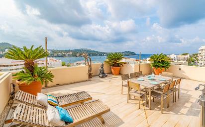 Este exquisitamente renovado apartamento en Santa Ponça se encuentra en segunda línea de mar y destaca por su ubicación céntrica, a solo unos minutos a pie de la playa, paradas de autobús, restaurantes y supermercados. El apartamento ofrece 60 m² de espacio habitable con dos cómodos dormitorios, dos baños modernos y una cocina de concepto abierto conectada sin interrupciones con el amplio salón. Uno de los puntos más destacados es la gran terraza de 70 m², elegantemente amueblada, con impresionantes vistas al mar, ideal para noches relajantes o reuniones sociales. La propiedad fue recientemente renovada con lujo y cuenta con comodidades de alta gama: -Calefacción por suelo radiante para máximo confort -Aire acondicionado central para un control climático perfecto -Electrodomésticos de alta calidad de Miele y Bosch -Sistema de filtración de agua para agua potable de la mejor calidad -Trastero práctico para espacio adicional Este apartamento combina diseño moderno con confort exclusivo, ideal como casa de vacaciones o residencia durante todo el año en una de las zonas más codiciadas de Mallorca. ¡Contáctenos hoy mismo para más información o para agendar una visita!
