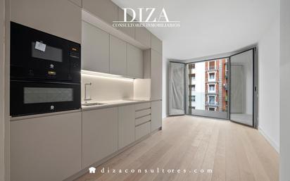 Diza Consultores les presenta Diza Consultores presenta esta sofisticada vivienda de obra nueva a estrenar, ubicada en la emblemática calle Santa Engracia, en el barrio de Almagro. Un proyecto residencial de arquitectura contemporánea que combina diseño, confort y exclusividad en una de las zonas más codiciadas de Madrid. Situada en planta alta, esta propiedad exterior disfruta de una excelente luminosidad y una cuidada distribución. El salón, con salida a balcón, se abre al exterior, mientras que el dormitorio, orientado a la parte interior, ofrece un ambiente sereno y tranquilo. La vivienda dispone de un dormitorio y un baño completo con ducha, con acabados de alta calidad, como suelos de roble. Incorpora calefacción y aire acondicionado por suelo radiante, sistema de domótica con pantalla táctil y gestión vía app con la que puedes controlar encendido y apagado de las luces, accionar las persianas, y controlar la climatización de la vivienda. La cocina, de diseño moderno, abierta, se entrega totalmente amueblada y equipada con electrodomésticos de primeras marcas, incluyendo lavadora-secadora, lavavajillas, horno, microondas, vitrocerámica, frigorífico y campana extractora. La finca, de estilo moderno y elegante, cuenta con ascensor, portero físico y tan solo dos viviendas por planta, lo que aporta un alto nivel de privacidad. Entre sus exclusivas zonas comunes destacan un gimnasio totalmente equipado, un espacio de coworking y un trastero incluido. Su ubicación privilegiada en Chamberí permite disfrutar de una vida urbana sofisticada, rodeada de comercios selectos, restauración de calidad, mercados tradicionales, centros deportivos y excelentes conexiones de transporte público, con rápido acceso al centro financiero y cultural de la ciudad. Una propiedad única para quienes buscan estrenar vivienda con las máximas prestaciones en una de las direcciones más distinguidas de Madrid. Convertimos Sueños en Hogares