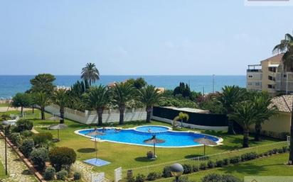 PRECIOSAS VISTAS AL MAR. Apartamento en PRIMERA LINEA de playa. Se vende con GARAJE, TRASTERO y ELECTRODOMÉSTICOS. Complejo residencial en primera línea de playa, zonas comunes dotadas de PISCINA, PADEL, JARDÍN, PARQUE INFANTIL y ACCESO DIRECTO A LA PLAYA. 68 m2 distribuidos en amplio y luminoso salón-comedor con acceso a TERRAZA de 12 m2 con vistas al mar y jardines, cocina independiente con galería, 2 habitaciones dobles con armarios empotrados y 2 baños (uno con bañera en habitación principal y otro con ducha). Suelo de mármol, paredes lisas, aire acondicionado, ventanas doble cristal. El contenido de este anuncio es meramente informativo y sin valor contractual, pudiendo contener algún error. Gastos, impuestos y gestión de venta no incluidos en el precio.