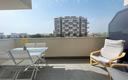 Este inmueble nada entrar tiene una cocina semiabierta en muy buen estado, en frente está el salón con el aire acondicionado. Y la terraza ( 11 mtrs) con orientación al sur.