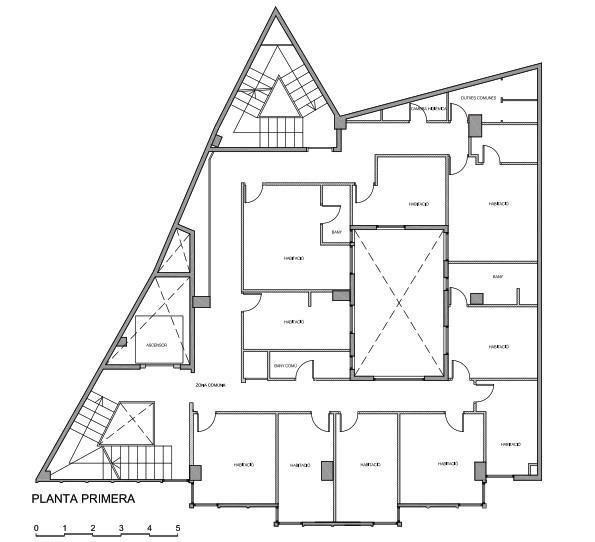 Entresuelo (197 m²): 3 habitaciones dobles + baño, 6 simples, 2 baños