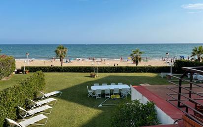 SITUACIÓN PRIVILEGIADA, EDIFICIO DE CHALETS ADOSADOS EN PRIMERA LINEA DE PLAYA EN VILAFORTUNY. Se venden separadamente. Garaje-trastero mas lavadero en la planta sótano. En planta baja encontramos en estilo rústico, el salón con chimenea y el comedor a diferente altura, cocina equipada, y salida al porche y al jardín comunitario frontal al mar. En planta primera habitación doble con armarios empotrados, baño en suite con bañera redonda y terraza frontal al mar, 2 dormitorios con altillo y un segundo baño. Acceso directo a la playa. Jardín comunitario posterior con plazas de parking. Aire acondicionado y bomba de calor en algunas estancias. Precio: 680.000 € cada chalet