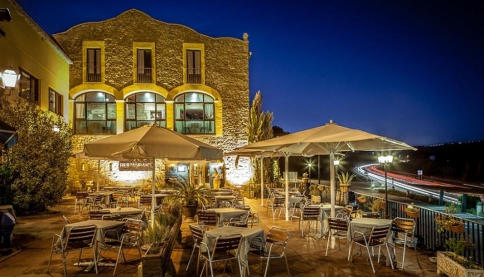 El restaurante al lado y con un gran depósito antiguo de agua. La finca está tocando la c-55. Oportunidad, a pie de carretera.