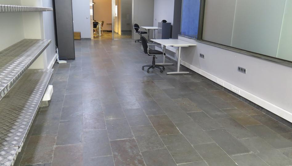 Local de disseny adaptat com a despatx, amb vidriera cap al carrer amb persiana electrica. Distribució d'iluminaria a tot el sostre, instalació i distribució de punts de llum per poder ubicar tantes taules com requereixi cada activitat. 2 sales independents que formen el fons del local, destinades actualment a sala de juntes i despatx, aquestes sales tenen una ventilació exterior i sortida de fums, terra de color pisarra.