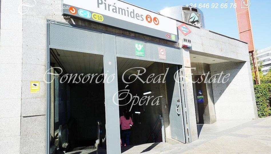 La glorieta de las Pirámides constituye el acceso este al puente de Toledo de Madrid, uno de los puentes históricos que salva el río Manzanares. Denominada inicialmente glorieta del Puente de Toledo, recibió su nombre de dos obeliscos construidos por Francisco Javier de Marietegui y erigidos en la plaza en 183112 (otras fuentes hablan de 1830).3 Actualmente, confluyen en la glorieta la calle de Toledo (antiguo Paseo de los Ocho Hilos), el paseo de Yeserías (que corre paralelo al río Manzanares, hacia el sur), el Paseo Imperial, el paseo de las Acacias (vía natural desde Atocha pasando por Acacias) y calle de Alejandro Dumas (anteriormente calle de las Cambroneras) que discurre inicialmente paralela al río Manzanares hacia al norte, y de la cual sale poco después, a la izquierda, el paseo de los Melancólicos. El Puente de Toledo conecta la glorieta con la del Marqués de Vadillo, al otro lado del Manzanares.