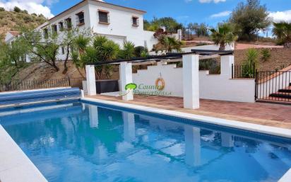 GRAN POSIBILIDAD PARA UN B & B NEGOCIO EN PLENA NATURALEZA. . Es una vivienda familiar muy amplia y de gran calidad, también puede ser un complejo ideal para un B & B y alquileres con grandes posibilidades para albergar caballos. Aproximadamente a unos 30 minutos de o bien la costa de Torre del Mar o bien vía Casabermeja, al centro de Málaga, minutos hasta el pueblo de Riogordo y el largo de Viñuela. Grande y fantástica, esta casa de campo está construida con grandes calidades y bien conservada, con mucho encanto, a tan sólo 30 minutos de la costa de Torre del Mar y de Málaga capital. La propiedad tiene un total de 7 dormitorios, 5 baños, 2 salones, 2 cocinas, garaje doble y piscina. Se construyó en 2006 y se compone de 3 unidades. La propiedad tiene 2 niveles y se compone de 2 casas grandes en el nivel principal/superior, separados por un patio y con acceso en coche desde la terraza superior o desde unas escaleras que suben desde el nivel inferior. CASA PRINCIPAL: ( 2 Dormitorios / 2 Baños) Amplio salón con cocina abierta, dormitorio doble con baño grande, dormitorio principal con vestidor y baño en suite con acceso directo a la terraza frontal de la casa con area donde sentarse y toldo para protegerse del sol del verano. El salón está equipado con una estufa de leña , tiene ventanas de doble acristalamiento PVC alta calidad, solería rústica tradicional, aire acondicionado f/c en todos los dormitorios más ventiladores en techos con control remoto. Desde el salón hay acceso directo a la terraza frontal con jacuzzi . La terraza tiene diferentes rincones donde sentarse y además hay una zona para jugar a la petanca, con unas vistas estupendas al valle y al campo verde. CASA DE INVITADOS: ( 4 Dormitorios / 2 Baños) Salón espacioso , cocina abierta con decoración rústica, comedor, 3 dormitorios dobles, cada uno con ventilador en techo y aire acondicionado, baño, dormitorio principal amplio al final del pasillo con año ensuite. Solería rústica, techos altos. Desde el salón hay acceso directo a la terraza superior, orientada al sur, con jacuzzi. PLANTA BAJA: Garaje grande con aprox 77m2 para dos coches, mucho espacio para almacenaje, zona para lavado de ropa, filtros y descalcificadores de agua . Hall acristalado con area para sentarse con unas vistas magníficaa de la montaña, un dormitorio grande, baño, local adicional para los depósitos de agua/ trastero, zona muy amplia para juegos. Amplio almacén/taller con pre-instalación de calefacción central radiante en suelo en la casa principal, lista para instalarse. Planta baja con mucho espacio , que puede redistribuirse y convertirse fácilmente en dos apartamentos de invitados o estudios, con dos baños si fuera necesario. Exterior : Amplio aparcamiento. Piscina grande con 11.30 m x 4.30 en el nivel más inferior, con privacidad completa y magníficas vistas a las montañas. Cancela de entrada, terrazas diferentes al lado este y oeste de la propiedad, asegurando una total privacidad al invitado, y sol y sombra por todas partes durante todo el día. 37.335 m2 de terreno ligeramente inclinado y plantado con principalmente alrededor de unos 100 almendros, 100 olivos, además de viñas y algunos árboles con frutos: aguacates, limones , mangos y naranjos. Casa de piedra vieja en la parte más baja del terreno con un pozo natural. Extras: Preinstalación de calefacción radiante en suelo, 9 aparatos de aire acondicionado f/c, estufas de leña, alarma, tv, internet.