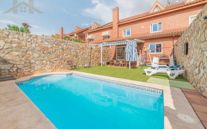 ¡HOGARES RIVAS BELLAVISTA VENDE! Chalet pareado con piscina y jardín en la mejor zona de Rivas Vaciamadrid, junto a la Avenida de Pilar Miró. Ponemos a la venta este magnífico chalet adosado situado en una de las zonas más demandadas y residenciales de Rivas Vaciamadrid. Tranquilidad, calidad de construcción, ubicación y comunicación con el resto de la ciudad es lo que le define. Rodeado de parques naturales y todo tipo de servicios como transporte, centros educativos, ocio y comercio. La casa cuenta con tres plantas y sótano: la planta baja se distribuye en un amplio recibidor por el que pasamos a la vivienda en la que podemos encontrar un aseo, amplia cocina, acceso al garaje y sótano y al salón comedor con una gran ampliación hacia la terraza con jardín, piscina de sal privada y zona de estar con pérgola y acceso directo al sótano. La primera planta consta de un baño completo, 2 habitaciones de muy buen tamaño y una habitación de matrimonio con gran baño en suite y jacuzzi. La segunda planta consta de una buhardilla habilitada para poder disfrutar con la familia de momentos de relax, ofreciendo amplitud y versatilidad para adaptarse a diferentes estilos de vida. En esta planta se pueden construir 2 HABITACIONES adicionales para familias numerosas. En la planta sótano nos encontramos dos dependencias individualizadas con buen tamaño para almacenaje o acomodar a cualquier gusto. Distribución y características: 3 habitaciones, todas exteriores, luminosas y con muy buenas dimensiones 2 baños completos, uno de ellos con jacuzzi y un aseo en la planta baja. Amplio salón comedor, muy luminoso y acogedor, con salida directa al jardín privado con pérgola y piscina. Además cuenta con una chimenea en cassette que da una gran elegancia a la estancia para poder disfrutar en los meses más fríos del año. Cocina independiente con zona de office, gran luminosidad y tamaño. La vivienda cuenta con todos los cerramientos Climalit con rotura de puente térmico, batientes y contraventanas correderas. Además el cerramiento del salón cuenta con aislamiento reforzado. La vivienda cuenta con aire acondicionado por conductos con bomba de frío-calor, calefacción por radiadores y termostatos distribuidos en todas las plantas. Jardín con piscina de sal, barbacoa, zona de sombra perfecta para relajarse y disfrutar de momentos en familia y amigos. Garaje en planta con muy buena capacidad. La vivienda se encuentra en excelente estado de conservación, lista para entrar a vivir sin necesidad de hacer reformas. Además de contar con varias reformas que le dan elegancia, calidad y durabilidad a la vivienda. Ubicada en una calle con acceso privado para los vecinos para mayor tranquilidad. Destacamos la posibilidad de financiación hasta el 100% gracias a FINANHOGAR, así como la opción de concertar una cita para visitarlo sin compromiso. ¡No dudes en visitar el que puede ser tu nuevo hogar! *Este anuncio no es vinculante, puede contener errores y esta sujeto a posibles modificaciones*