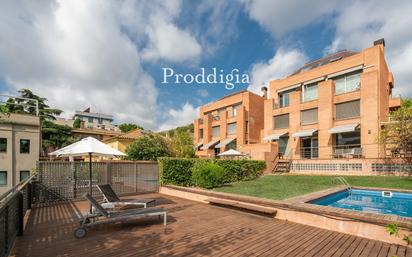 Preciosa casa de unos 815m2 y parcela de 500m2 aprox. ubicada en zona Bonanova, muy cercana a la Teknon, con vistas a Barcelona y a la casa Bell Resguard de Gaudí. La casa es pareada y tiene distintos niveles (todos ellos comunicados con un ascensor) perfectamente distribuidos según sus usos y necesidades, con grandes ventanales y estancias amplias, cómodas y muy agradables. En la planta principal encontramos el maravilloso hall de entrada y el gran salón-comedor, rodeado de ventanas y verde, con capacidad para muchas personas y en forma de L, con usos bien diferenciados: salón, comedor (con mesa para unas 10 personas) y estar-lectura. Este espacio tiene salida directa a la maravillosa terraza, con espacio para comer y gran zona de barbacoa, y a continuación el precioso y tranquilo jardín con piscina, orientado a este, y con sol directo todo el día. La cocina, completamente exterior, de unos 15m2 tiene una soleada y preciosa zona office con mesa y barra. En la primera planta encontramos 4 dormitorios dobles (uno de ellos en suite con vestidor) y dos baños amplios y completos. Todo completamente exterior con amplios ventanales y rodeada de verde y, en la fachada que da al jardín, con preciosas vistas y tranquilidad absoluta. En la segunda planta encontramos una suite, un gran despacho orientado al jardín y la ciudad, y una preciosa y tranquila zona de billar (podría cerrarse para conseguir un dormitorio más). Arriba de todo, hay una amplia buhardilla con techos de madera y un gran espacio polivalente ideal para ser usado según las necesidades de la familia que viva en la casa. Desde la planta de acceso a la casa hacia abajo, encontramos dos plantas más con gimnasio, despachos, sauna y jacuzzi y el gran garaje con capacidad para 4-5 coches. Estas dos plantas se caracterizan por tener una amplia zona de servicio y/o invitados compuesta por un apartamento completo. Espectacular propiedad, amplia y muy cómoda ubicada en una de las zonas más demandadas de la ciudad, cerca de todos los servicios y colegios de prestigio, así como de las grandes entradas y salidas de la ciudad. No dude en contactar para ampliar información o agendar una visita.