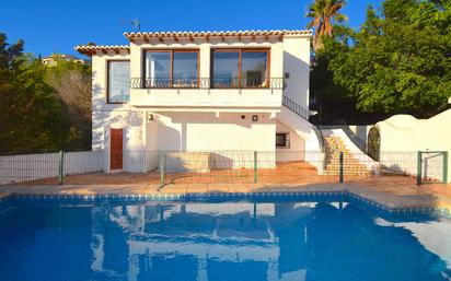 Bonito chalet situado en una magnífica zona residencial de Benitachell, muy bien comunicada con el casco urbano, a escasos minutos andando al pueblo y a todos los servicios. La zona es muy tranquila y soleada por lo que es ideal para vivir todo el año, la casa tiene unas bonitas vistas abiertas. En el exterior, sobre una parcela de 880m2 podemos encontrar un jardín de fácil mantenimiento, amplia terraza, piscina con bonitas vistas abiertas, zona de cocina de verano, La vivienda de aproximadamente 149m2 está distribuida cómodamente en 2 plantas del siguiente modo: Planta primera: Porche cubierto con bonitas vistas abiertas, salón-comedor con chimenea, cocina totalmente equipada, 3 dormitorios y 2 baños (1 en suite) Planta baja: Salón, 1 habitación grande, 1 cuarto de baño, lavadero. La vivienda está equipada con aire acondicionado tipo split y calefacción central. Sin duda alguna les recomiendo la visita!