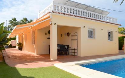 Chalet unifamiliar independiente de 4 dormitorios a un paso de playa de arena, en la zona de Las Brisas. La vivienda, construida toda en una planta, cuenta con una superficie total construida de 121,62 m2 distribuidos en 4 dormitorios, 2 baños (1 en suite), salóncomedor, cocina, lavadero, trastero cerrado y 2 terrazas cubiertas con diferentes orientaciones. Mediante escalera exterior tenemos acceso a un amplio solarium con preciosas vistas al Montgó y los alrededores. Con buenas calidades de construcción, la vivienda ha sido recientemente renovada. Toldos con sensores de viento, ventanas con doble cristal, luces led exteriores con sensor de movimiento, ventiladores techo, aire acondicionado (frío y calor), placas solares, calefacción de gas, ... Está construida sobre una parcela de 623,50 m2, totalmente llana y esquinera con mucha privacidad. Piscina independiente, ducha con agua caliente, toldos con sensor de viento, pozo para riego, parking techado para 2 coches con puerta corredera automática. Ubicada en una de las zonas más cotizadas de la playa de Dénia, en la zona del Centro Comercial Las Brisas a escasos 3 kms. del centro del pueblo y que cuenta con todo tipo de servicios abiertos todo el año: farmacia, supermercado, restaurantes, tiendas, ... Con parada de autobús cerca. Una vivienda ideal para veranear, pasar largas temporadas e incluso como vivienda habitual.