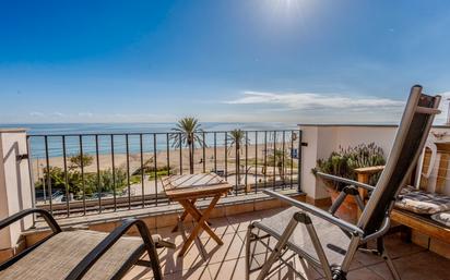 PRIVILEGIADA CASA A DOS CALLES, FRENTE AL MAR. Excelente vivienda luminosa y totalmente exterior, con una superficie de 170 m² más amplias terrazas. Actualmente dispone de 4 habitaciones, 2 baños completos, un baño de cortesía, salón comedor y cocina independiente de 15 m², con salida directa al patio. En la parte superior de la casa se encuentran dos magnificas terrazas, siendo la principal la más destacada por su orientación al mar y sus impresionantes vistas panorámicas de 180º. La propiedad incluye además garaje en la misma casa para un coche y motos. Se trata de una vivienda actualizada y lista para entrar a vivir, ideal para familias que buscan tranquilidad, amplitud y una ubicación inmejorable; junto al mar y muy cerca de Barcelona. Solicítenos más información detallada sobre esta interesante propiedad.