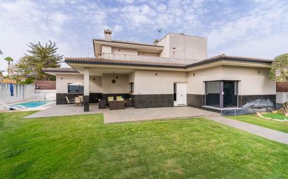 Magnífica casa situada en una de las zonas más valoradas de Jerez de la Frontera. Dispone de muy buenas comunicaciones que la conecta con todo fácilmente. La parcela, con 600 m2., se dispone en forma casi cuadrada con amplia fachada a una avenida de gran amplitud. En ella se sitúa una piscina con un tamaño perfecto (3,7 x 9 m.) para refrescarse y relajarse en los calurosos días estivales. El espacio restante de la parcela es ideal para barbacoas con familia o amigos o simplemente para sentarse a leer y disfrutar del tiempo libre. Es una casa concebida de forma práctica, para economizar el mantenimiento de la misma en su exterior. Su estilo destaca por su atemporalidad con un toque tradicional, con tejados inclinados, pero de tejas negras y fachadas con líneas rectas que le dan una imagen de modernidad. Como toda casa que se haya vivido, ésta ha sido el hogar de una familia que ha visto crecer a sus hijos y que ahora deciden comenzar una nueva etapa como lo puede ser la de usted y la de los suyos. Destaca su amplitud, con 536 m2. repartidos en planta sótano más dos plantas que se distribuyen de la siguiente forma: PLANTA SÓTANO: A él se accede tanto internamente por la vivienda como por el exterior con los vehículos a través de su rampa de acceso. Son 4 los coches que puede guardar y aún queda espacio para una sala de instalaciones/trastero y otra, muy espaciosa, perfectamente equipada y decorada para el ocio con zona de estar, baño y cocina abierta; PLANTA BAJA/PRINCIPAL: Un hall nos recibe dejándonos entrever las generosas dimensiones que nos vamos a encontrar en el resto de la casa. La cocina, en forma de L, está totalmente equipada con altas calidades y tiene una zona de office con mesa comedor. El salón cuenta con amplios ventanales y chimenea. El resto de la planta se distribuye en 3 dormitorios con sus 3 baños incorporados más un aseo. PLANTA ALTA/PRIMERA: Para los más independientes de la casa, aquí nos encontramos un dormitorio, baño y sala de estar con acceso a una bonita terraza. En definitiva, es una casa que lo tiene todo: diseño, calidades, amplitud, luminosidad, espacios exteriores,... y muy cómoda, al disponer de las habitaciones principales en una sola planta. Si le ha convencido, contáctenos y concierte una visita!