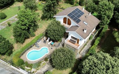 Una llar on la natura entra per totes les finestres i on la privacitat es converteix en luxe autèntic. A l’exterior, tot convida a viure en llibertat. La piscina que refresca els estius, el jardí que s’obre com un espai de joc, la zona de barbacoa i chill out pensada per gaudir de llargues nits a la fresca i que es transforma en punt de trobada per celebrar moments. Parcel·la de 814 m2. La planta principal és càlida i pràctica alhora: un menjador amb sala d’estar presidit per una llar de foc que convida a tardes de silenci i hiverns de conversa, amb sortida directa a la terrassa. La cuina, independent i lluminosa, també s’obre al jardí, fent que l’exterior i l’interior es fonguin en un mateix ritme de vida. Tres habitacions amb armaris encastats i un bany complet amb dutxa completen aquest nivell, pensat per la comoditat del dia a dia. Pujant a la segona planta, s’hi descobreix un espai ple de possibilitats: un gran estudi per treballar, crear o simplement deixar-se inspirar, i una suite amb armaris encastats, bany amb dutxa i banyera i sortida a terrassa privada amb vistes que enamoren. Annexos de traster sumen practicitat a aquest nivell. A la planta semisoterrada, el garatge per a un cotxe i espai extra d’emmagatzematge resolen la part més funcional de la casa. I encara hi ha més: plaques solars, sistema de cloració salina nova (piscina), reg automàtic, descalcificador, i sistema d’osmosi que parlen d’una llar més sostenible, preparada per avui i per demà. Una casa per viure, respirar i gaudir al ritme de la natura, amb el privilegi de vistes infinites i una intimitat que no té preu. Hi fem una vista?